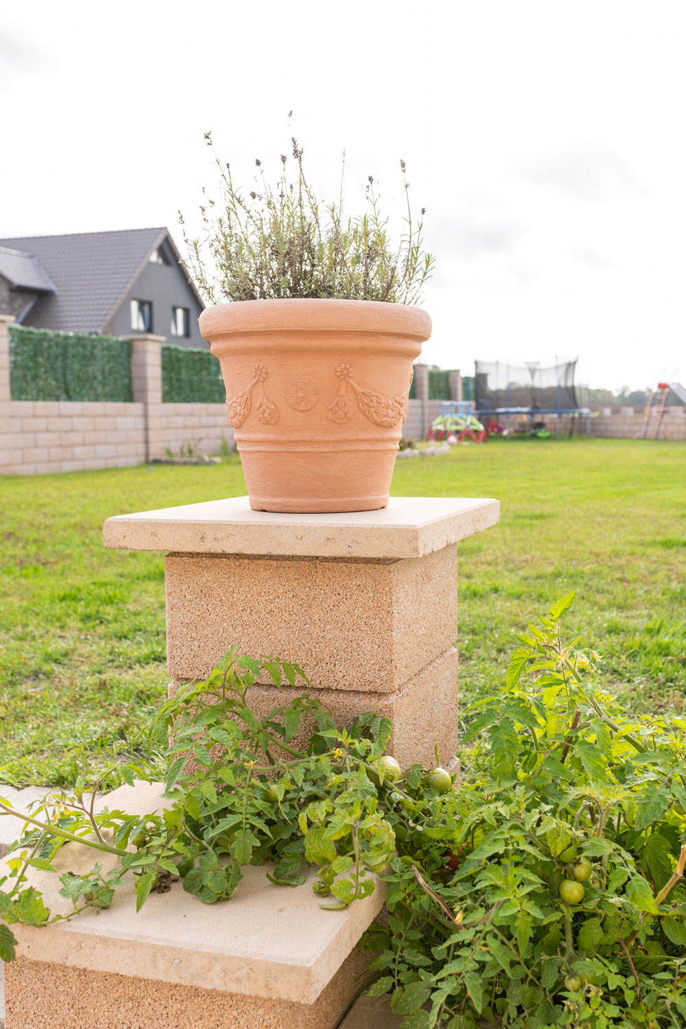 Klassische Mauerform mit betonten Pfeilern: die COLUNA Gartenmauer ist schnell und einfach aufgebaut.