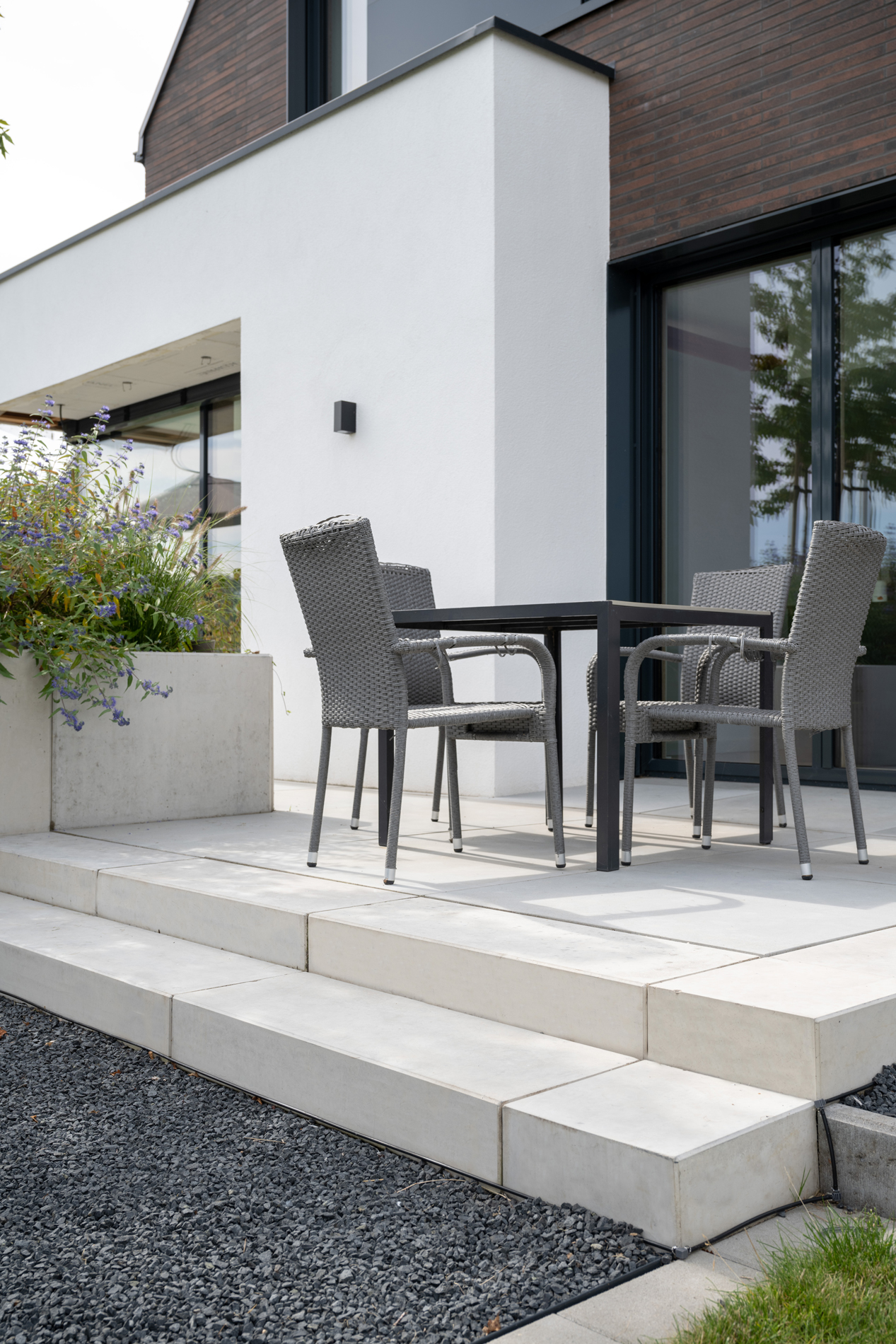 Die ELEMENTO Blockstufe überzeugt durch ihr schlichtes und feinporiges Design. Passend dazu: ELEMENTO Bordstein