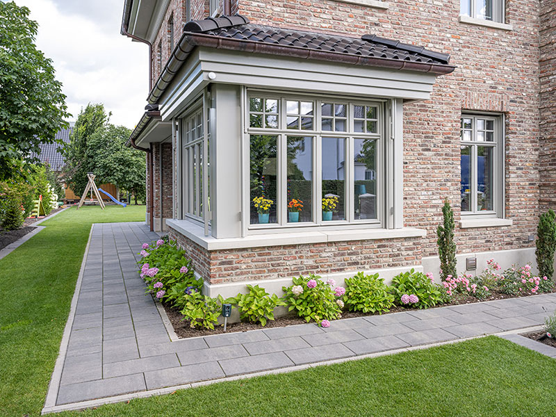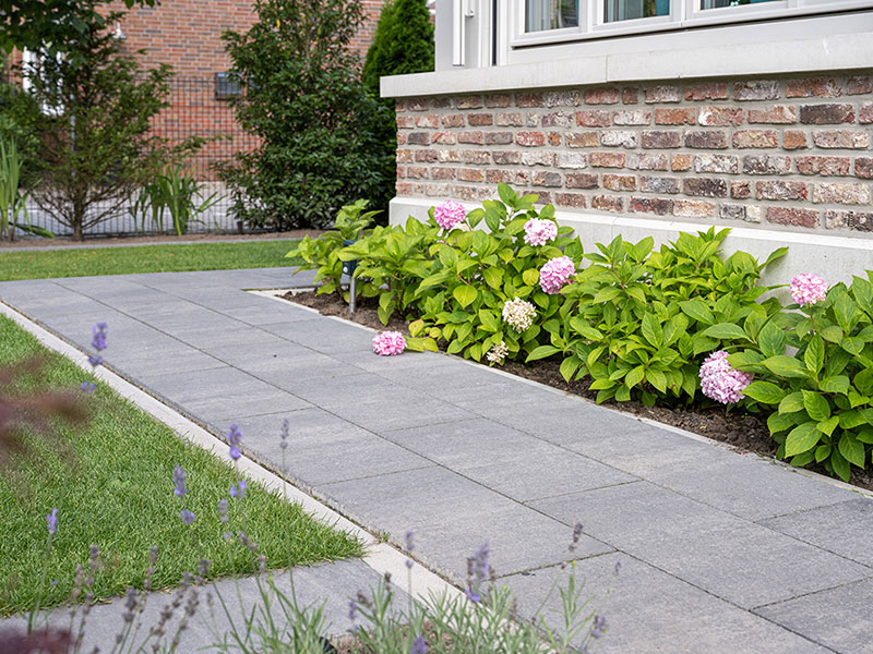- rechteckige Pflasterplatten mit glatter Oberfläche und leichter Fase