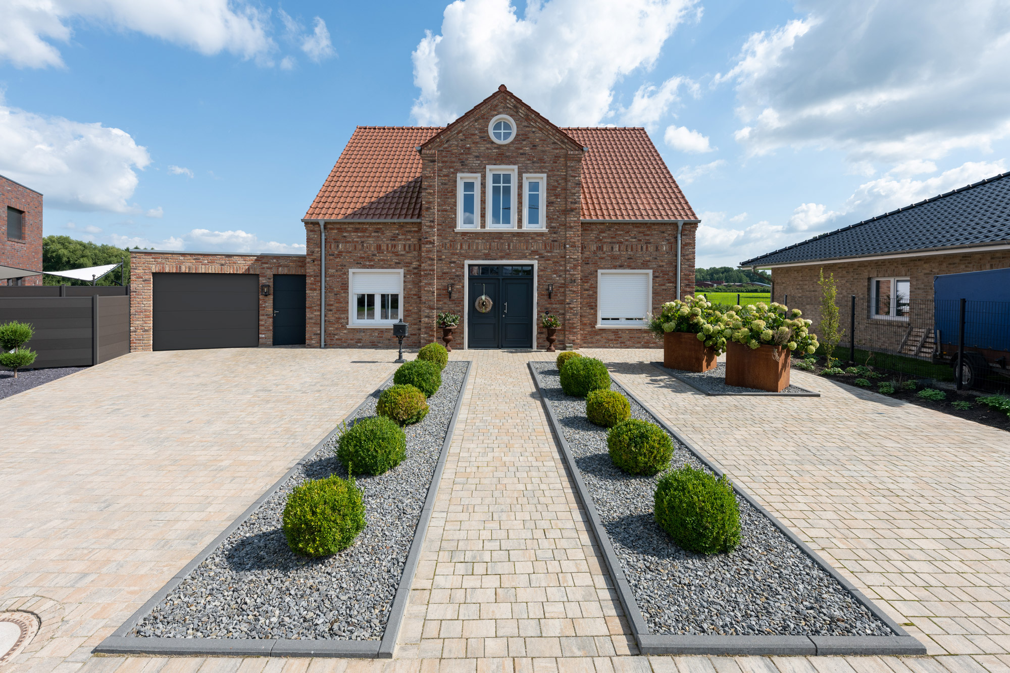 So erhalten Sie beispielsweise für unseren LINEO-Pflasterstein und unseren LUMO-Pflasterstein in der Farbe Muschelkalk dasselbe Muster, da Farbgebung und Beschichtung identisch sind. Das Oberflächenmuster steht stellvertretend für mehrere Produkte. Das Format hat keinen Einfluss auf die Farbgebung des Produkts.