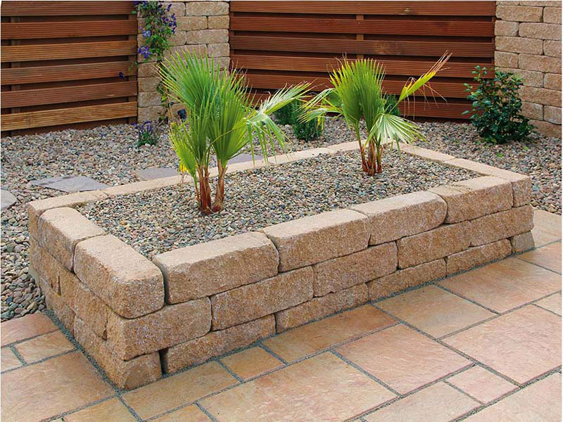 | Einsatzbereich: | Ab- und Begrenzung/ Einfassung, Geländeterrassierung, Gärten/ Parks, Sicht- und Lärmschutz, Zu- und Eingänge/ Gartenwege, Zufahrten und Hofflächen |