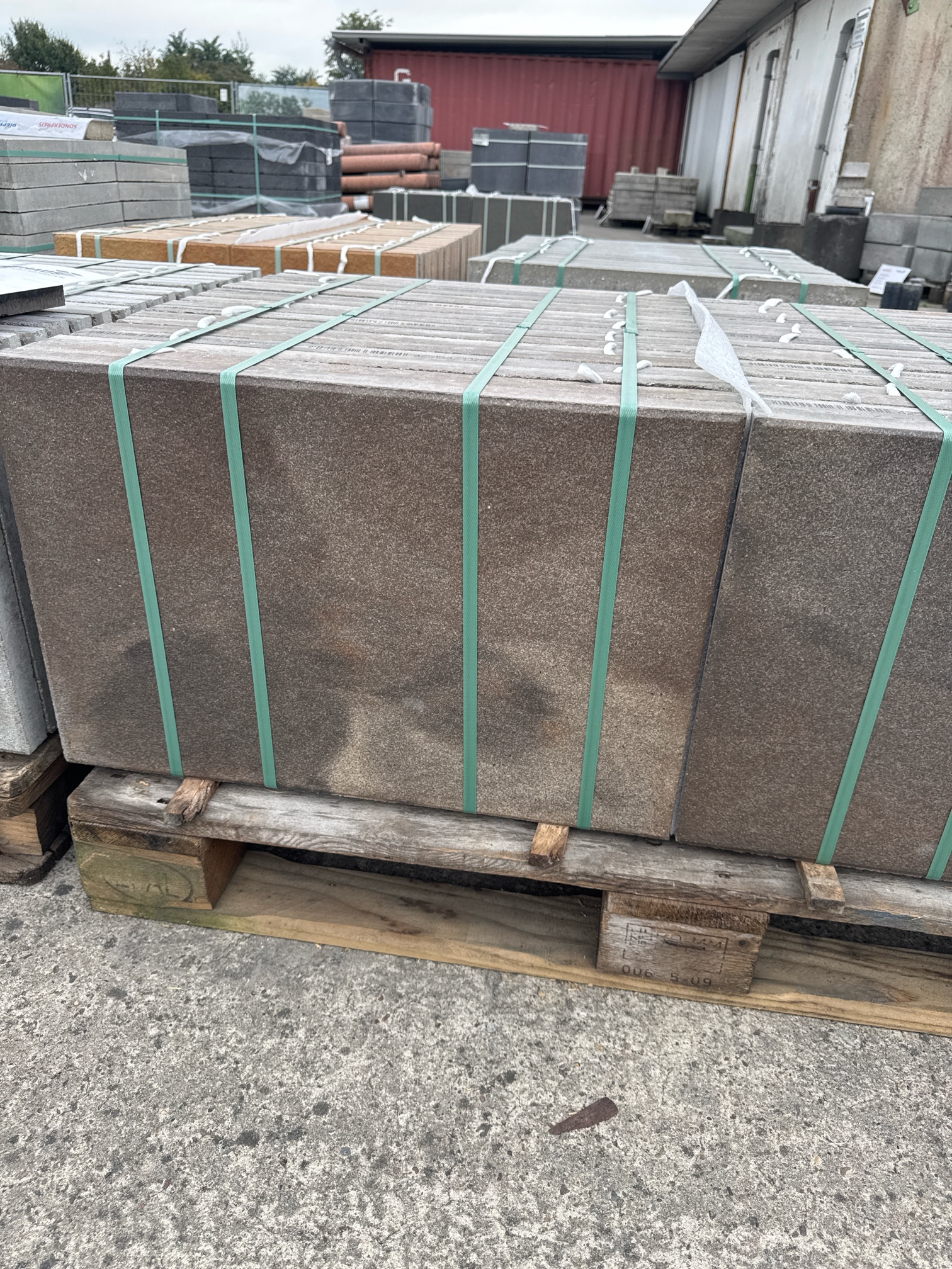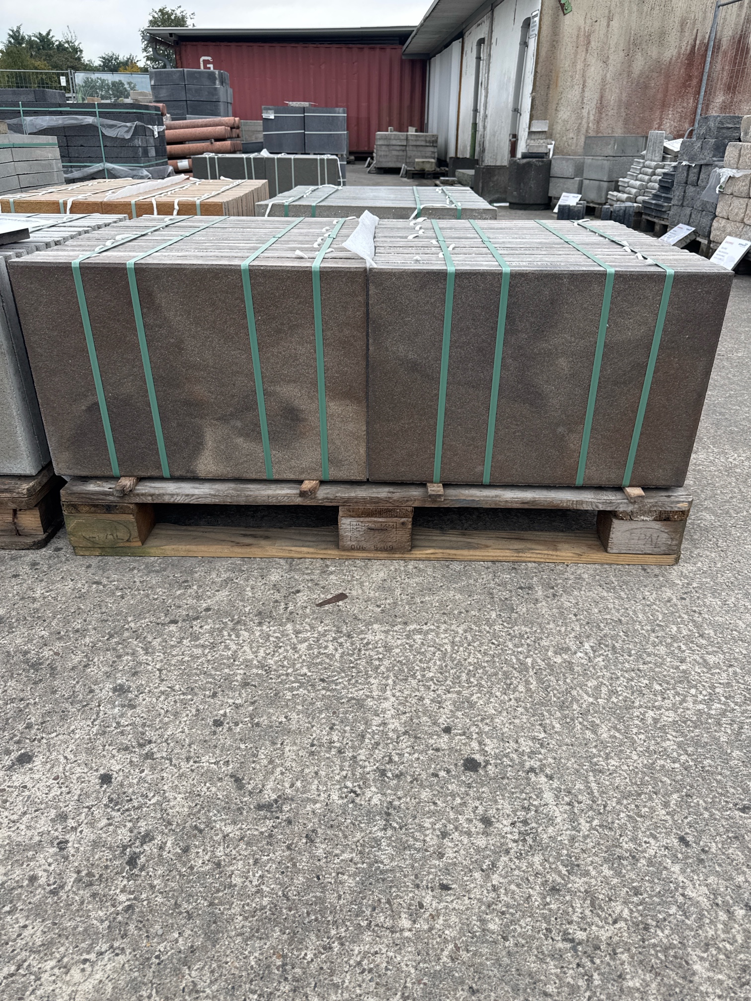 Terrassenplatten die Belgische Marrone im Format 60x40x4 cm als B-Ware mit Fehlern in der Beschichtung und es sind Kalkflecken möglich