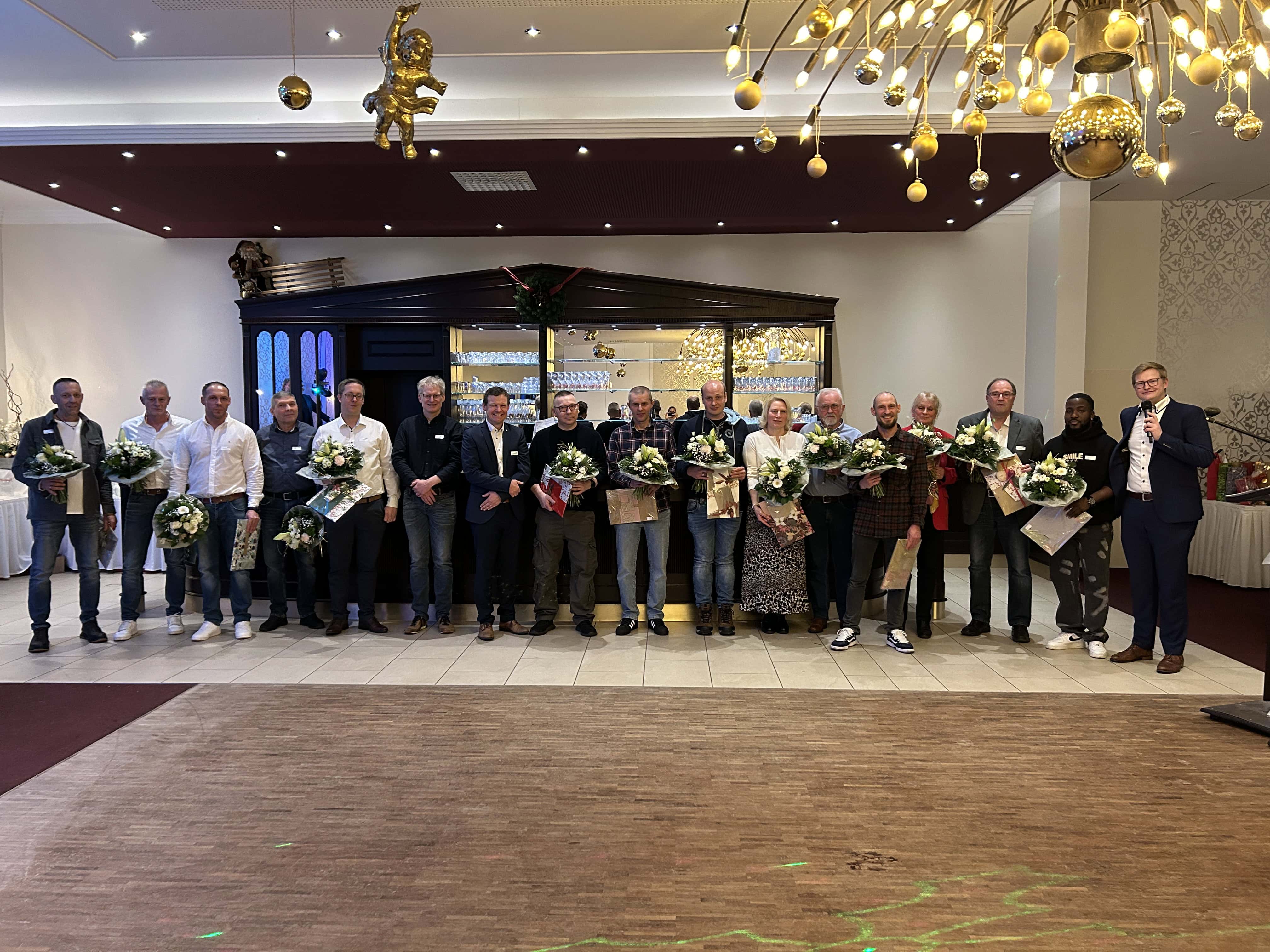 In diesem Jahr dürfen wir 16 Kolleginnen und Kollegen für ihre langjährige Treue und ihren unermüdlichen Einsatz ehren. Zusammen bringen unsere Jubilare beeindruckende 330 Jahre Erfahrung mit! Unsere Jubilare 2024:- 45 Jahre: Bernd Marischen- 35 Jahre: Rolf Lüking- 25 Jahre: Viktor Gerner- 15 Jahre: Christoph Hinz, Ekue Djossou, Jürgen Wolf, Marcel Middendorf, Oliver Maraun- 10 Jahre: Cezary Dmytryk, Adam Olszewski, Benjamin Stelljes, Gudrun Kurre, Hans Riesenbeck, Angela Plassenberg Auf unserer Weihnachtsfeier in Vechta wurden sie für ihre großartigen Leistungen und ihre Loyalität feierlich geehrt. Bernd Marischen, seit 45 Jahren im Personalbereich tätig, hat unser Unternehmen entscheidend mitgeprägt. Rolf Lüking, unser Frühaufsteher, sorgt seit 35 Jahren dafür, dass die Produktion wie am Schnürchen läuft. Viktor Gerner hat in 25 Jahren tausende Quadratmeter Betonwaren produziert. Wir danken euch allen für euren Beitrag zu unserem Erfolg und eure unglaubliche Loyalität. Ohne euch wäre Diephaus nicht das, was es heute ist. Lasst uns gemeinsam auf euch anstoßen und auf viele weitere Jahre Erfolg und Zusammenarbeit! ?